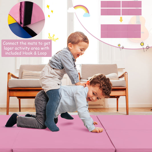 6 x 2 FT Tri-Fold Gym Mat with Handles and Removable Zippered Cover-Pink