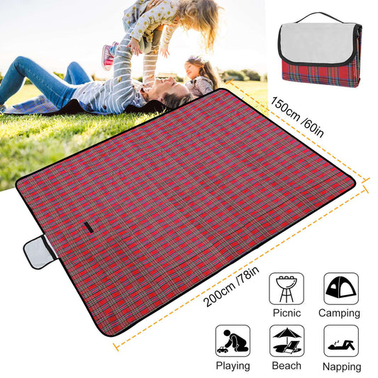 60" x 78" Waterproof Picnic Blanket Handy Mat with Strap Foldable Camping Rug for Camping Hiking Grass Travelling
