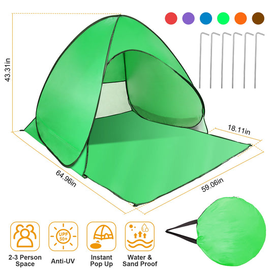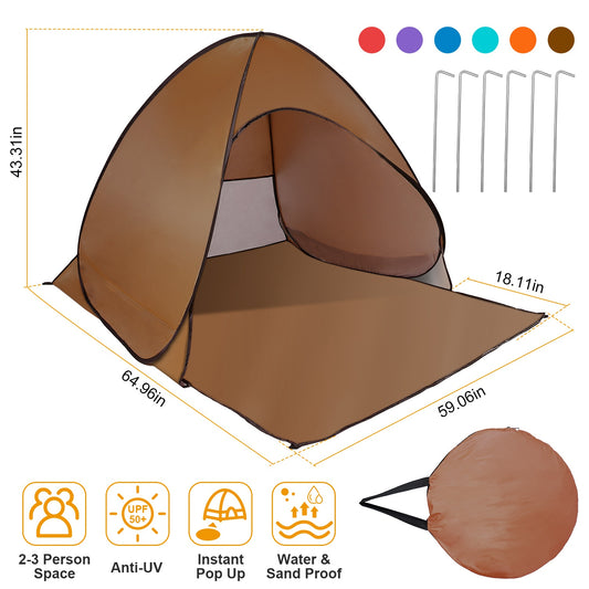 Pop Up Beach Tent Sun Shade Shelter Anti-UV Automatic Waterproof Tent Canopy for 2/3 Man w/ Net Window Storage Bag for Outdoor Beach Camping Fishing P