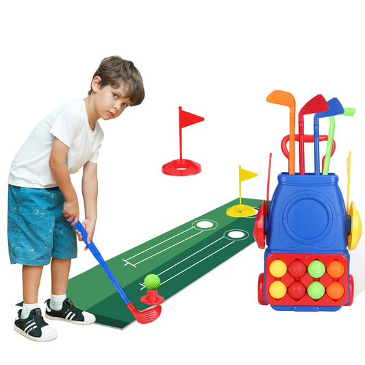 Toddler Golf Set with 4 Balls 4 Clubs 2 Holes 2 Flags Golf Cart Indoor Outdoor Golf Game Gift For 3-5 Years Old Kids