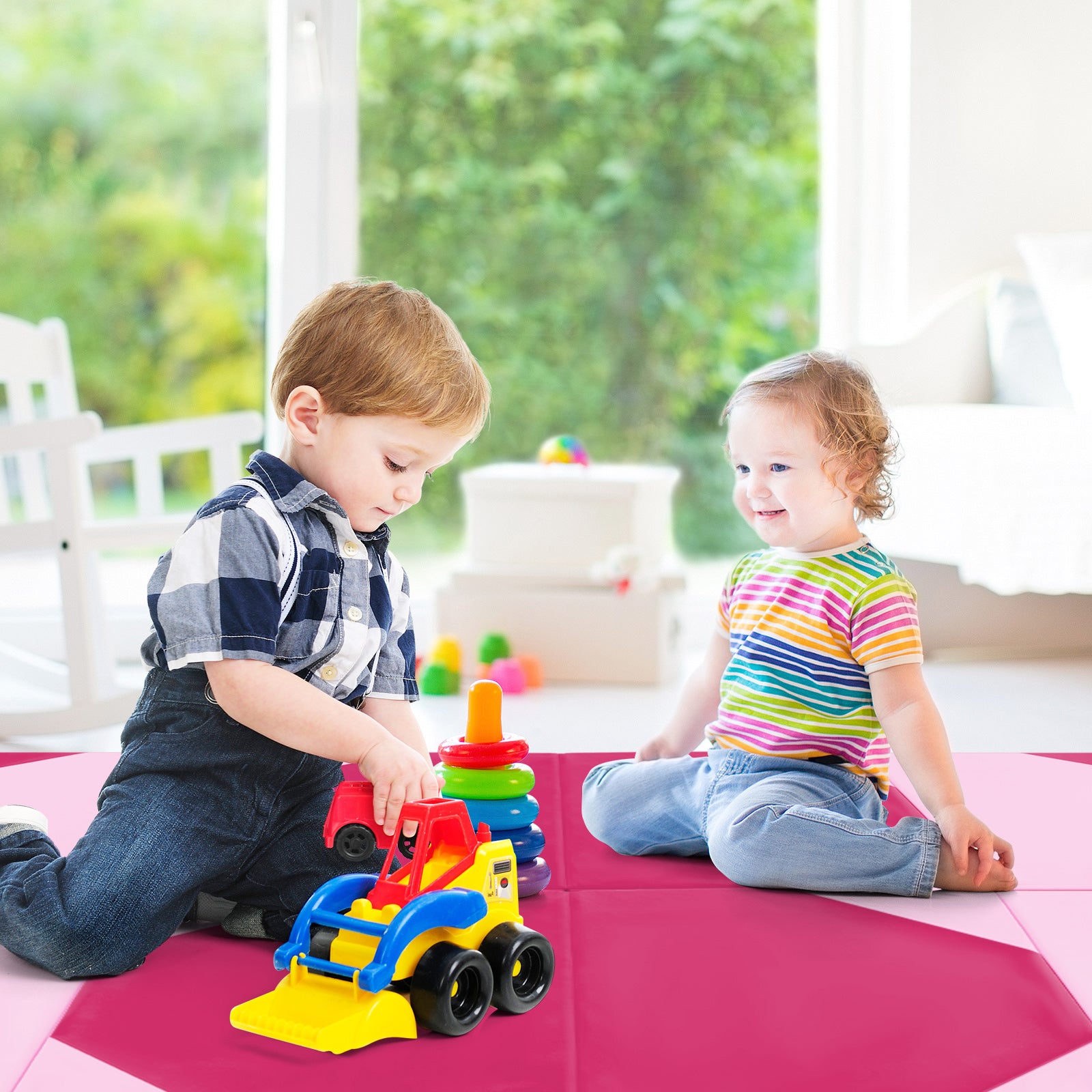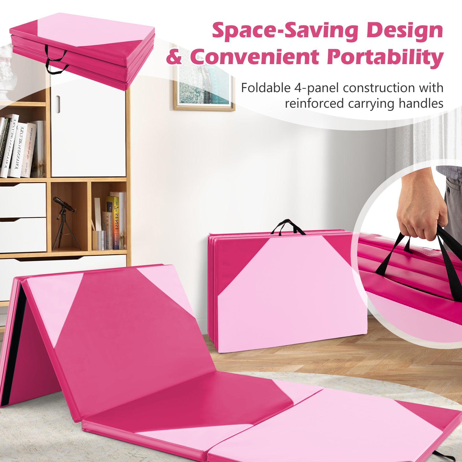 10 Feet x 4 Feet x 2 Inch Folding Exercise Mat with Hook and Loop Fasteners-Hot Pink