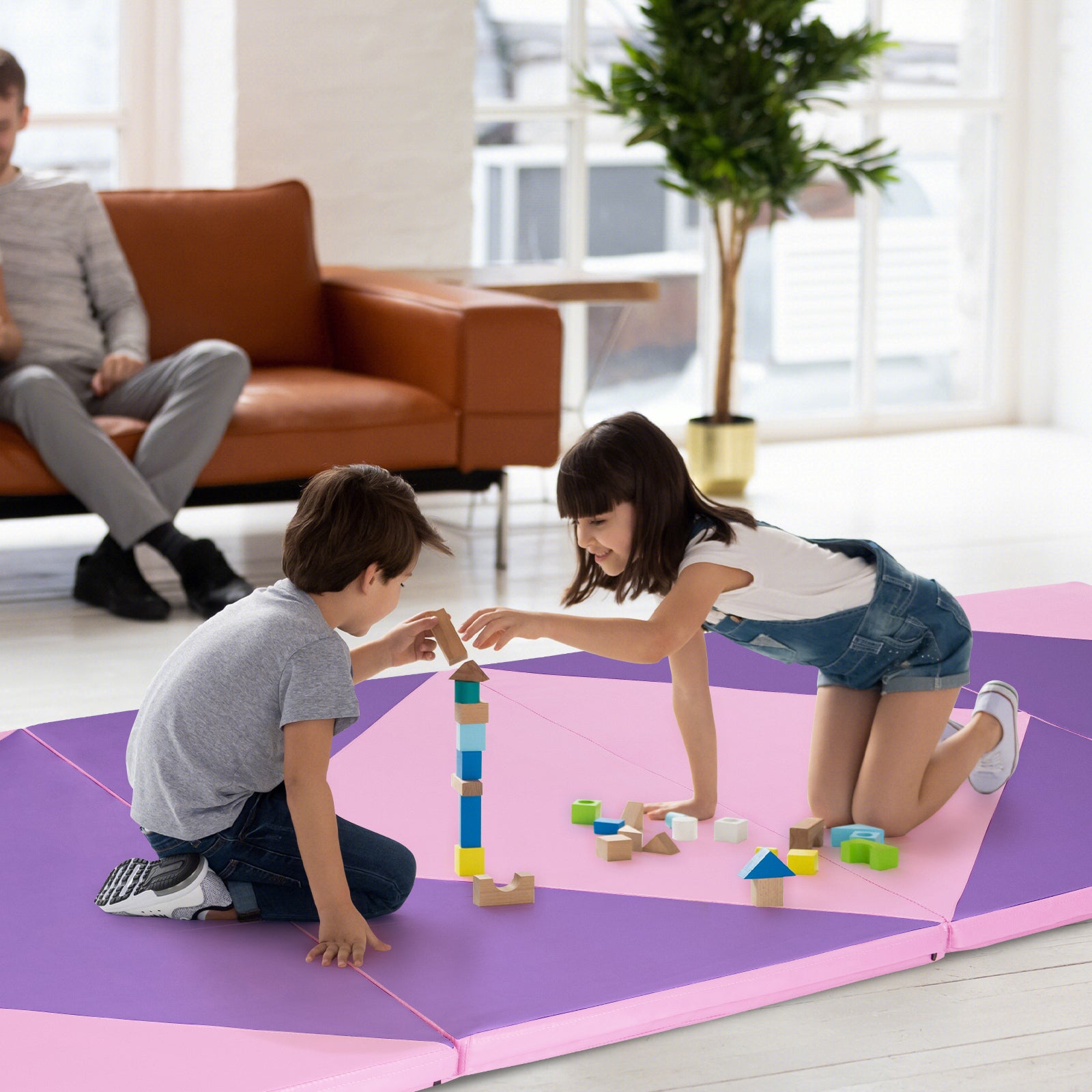 4-Panel PU Leather Folding Exercise Gym Mat with Hook and Loop Fasteners-Pink & Purple