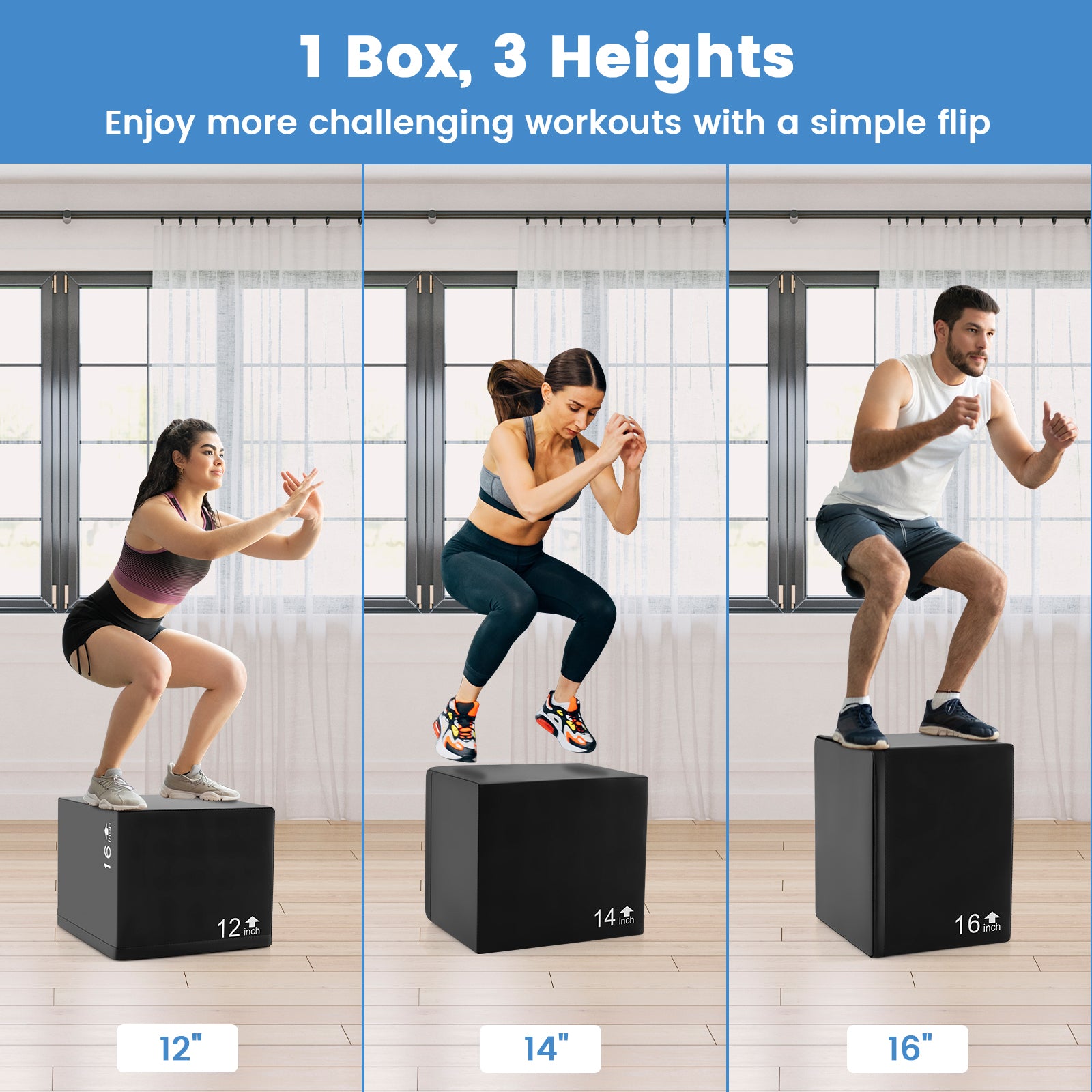 3 In 1 Foam Plyometric Box with 3 Heights and Easy-to-Clean PU Cover-16 Inches