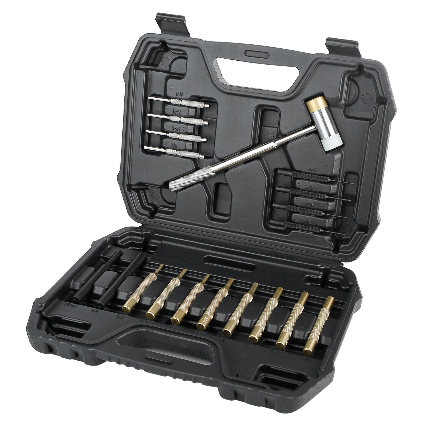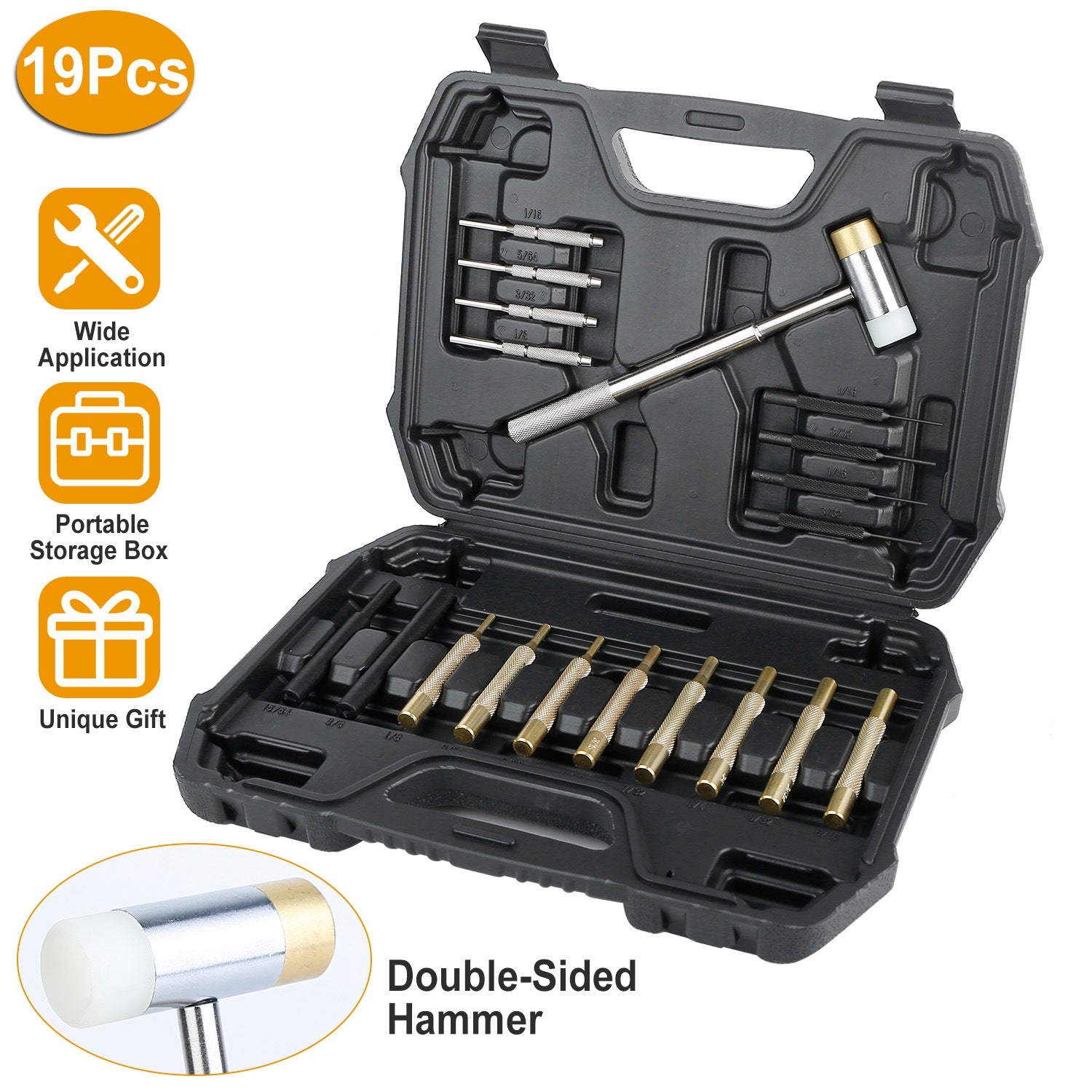 19Pcs Hammer Punch Set Drift Pin Punch Kit w/ Brass Chromium Plastic Punches for Gunsmithing Maintenance Armorers Watch Jewelry Craft w/ Portable Stor