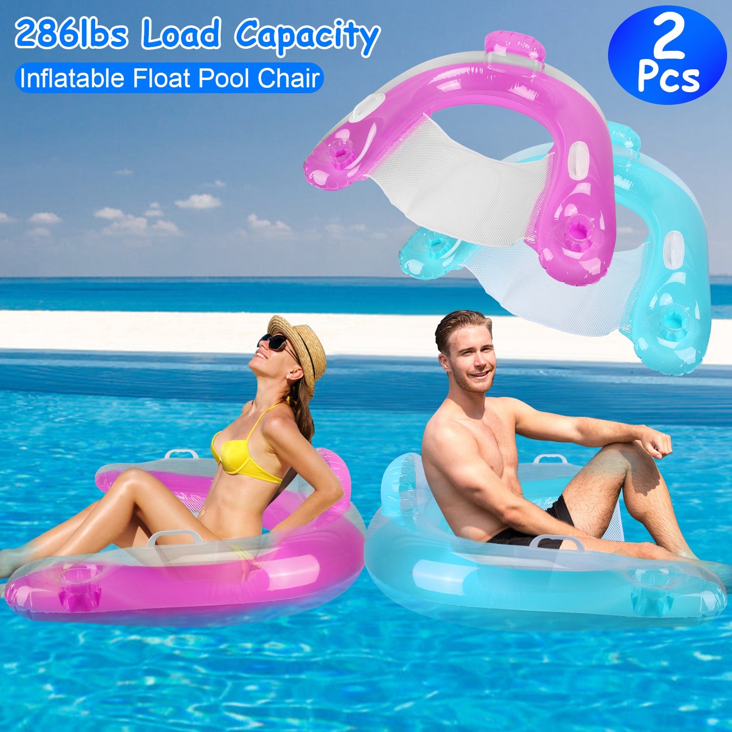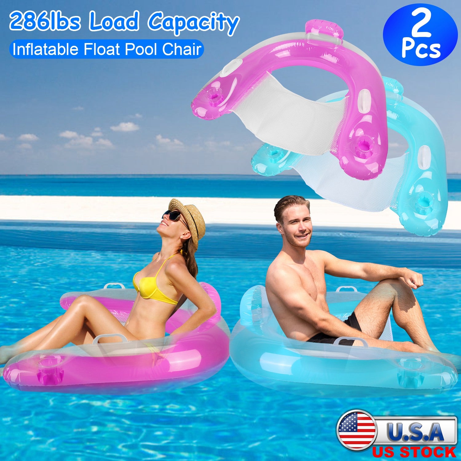 2Pcs Inflatable Float Pool Chair 286lbs Load Water Lounger Floating Mattress with Cup Holder Arm Rest Outdoor Pool Party Beach