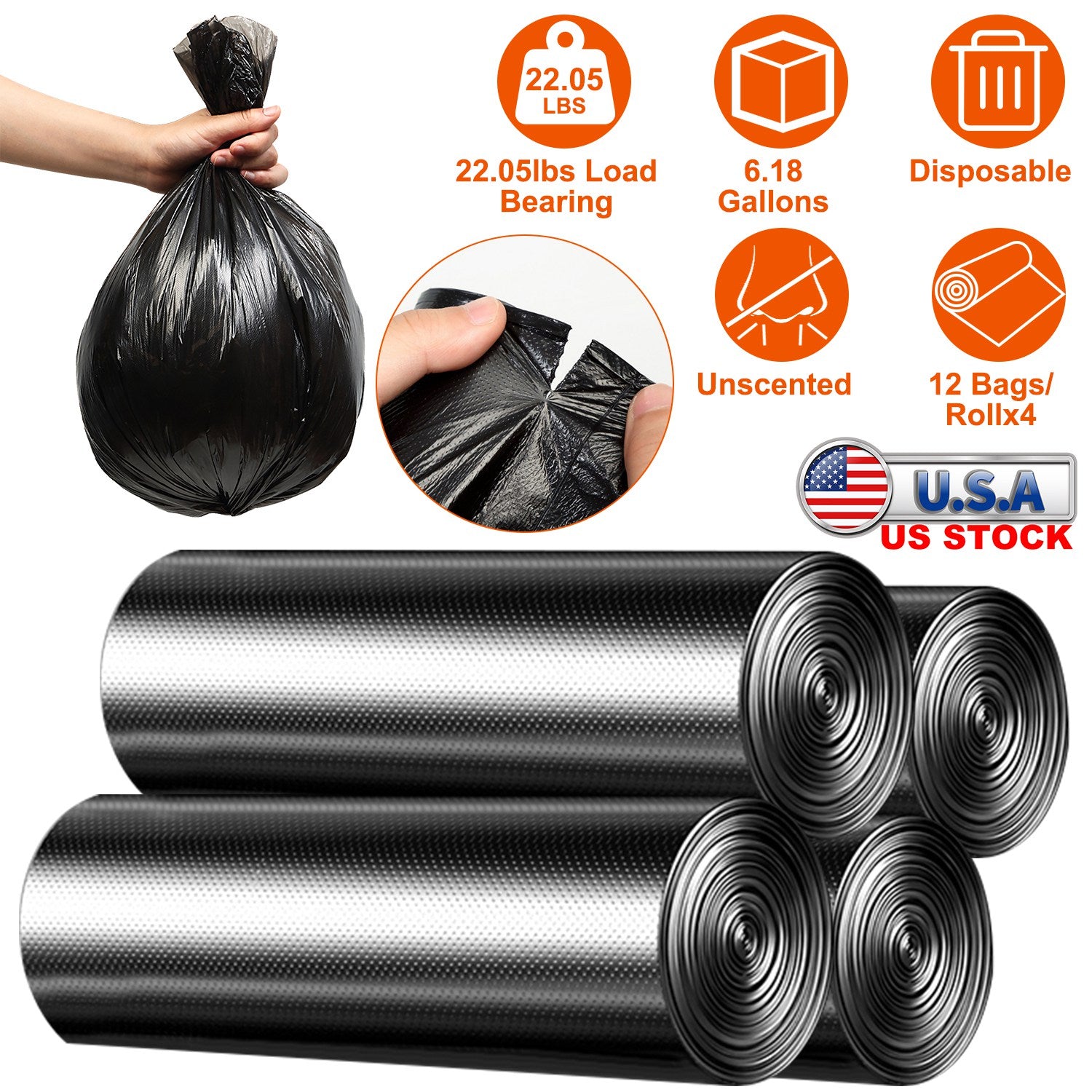 4 Rolls Black Garbage Bags 6.18 Gallons Unscented Disposable Trash Bags Portable Leak Resistant Trash Can Liners for Bathroom Office Kitchen Bedroom C
