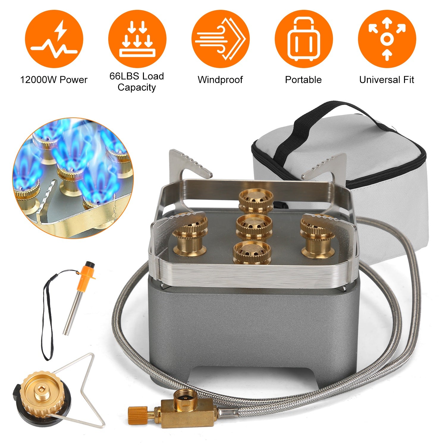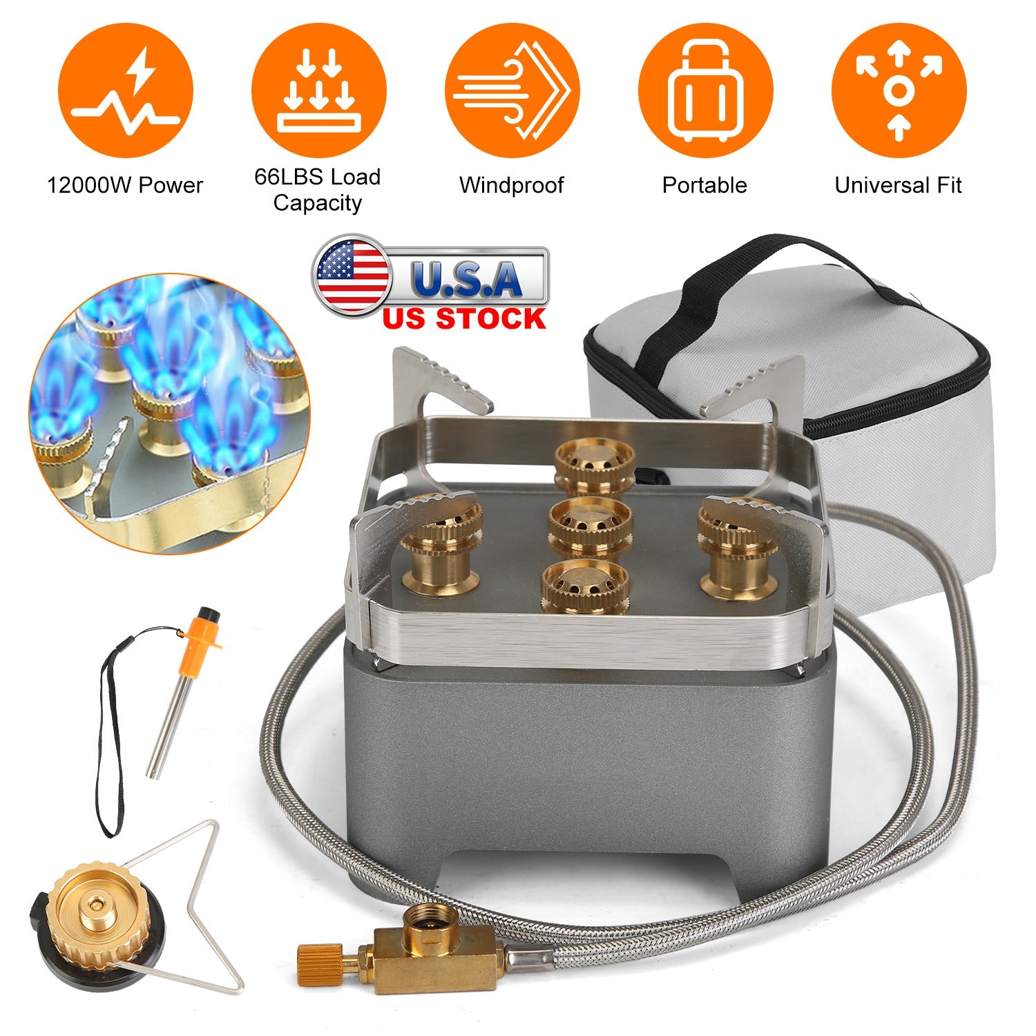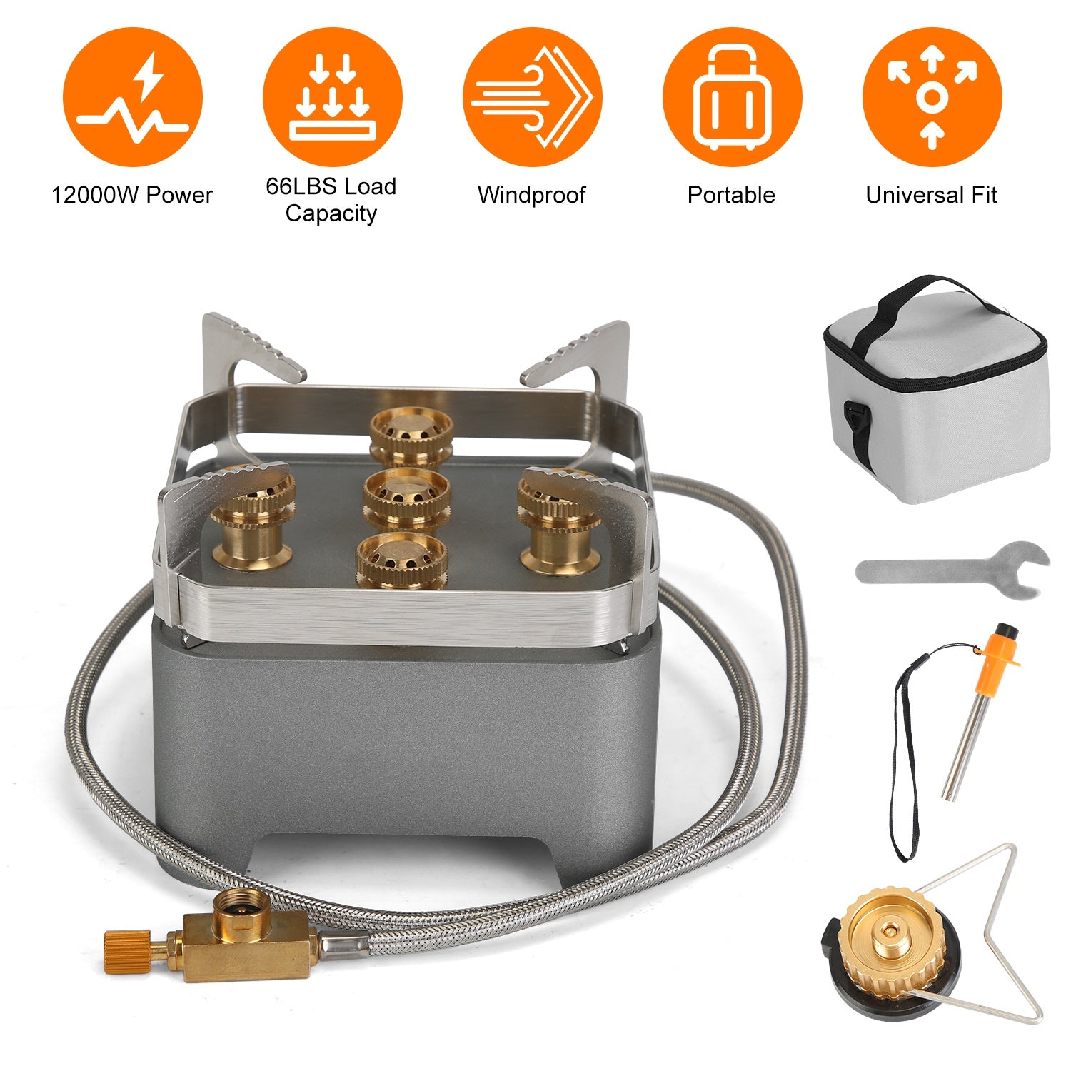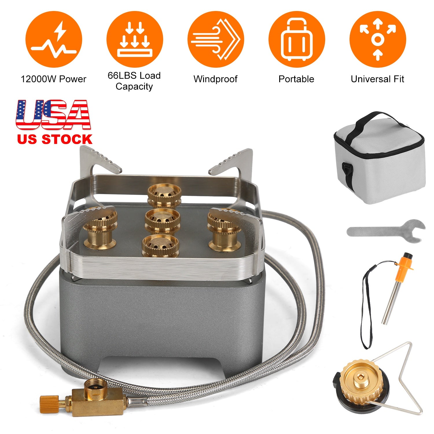 Ideal for various outdoor activities such as camping, hiking, picnics, backpacking, RV travel, and overnight trips, our 12000W powerful camping stove is a must-have companion for any outdoor cooking enthusiast. With a user-friendly rotating control knob, you have the flexibility to adjust the power according to your cooking needs. Crafted with 5-core pure copper brass burners, this camping stove ensures a reliable and steady flame, even in windy conditions. Its robust construction is resistant to heat, corrosion, and deformation, supporting a maximum load capacity of 66lbs. Experience the joy of hassle-free cooking in the great outdoors with our reliable and efficient portable camping stove.