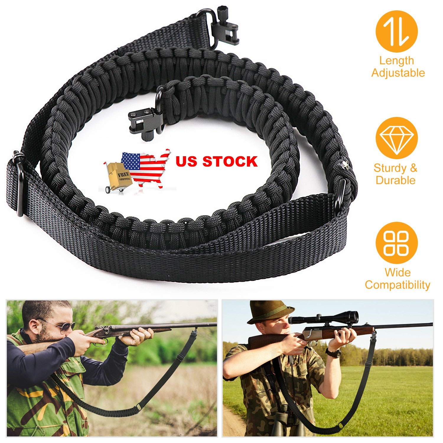 Tactical Paracord Sling Adjustable Paracord Strap Gun Belt Rifle Gun Sling w/ Dual Point 360 Degree Swivel Rotating Latches
