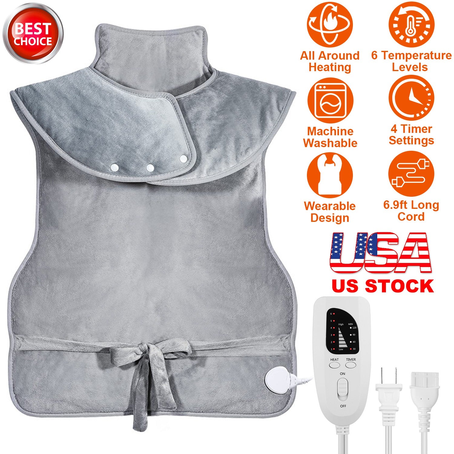 36.6x22in Electric Heating Wrap for Neck Shoulder Fast Heating Pad Mat Heated Neck Wrap for Back Pain Relief with 6 Temperature Settings 4 Timer Modes