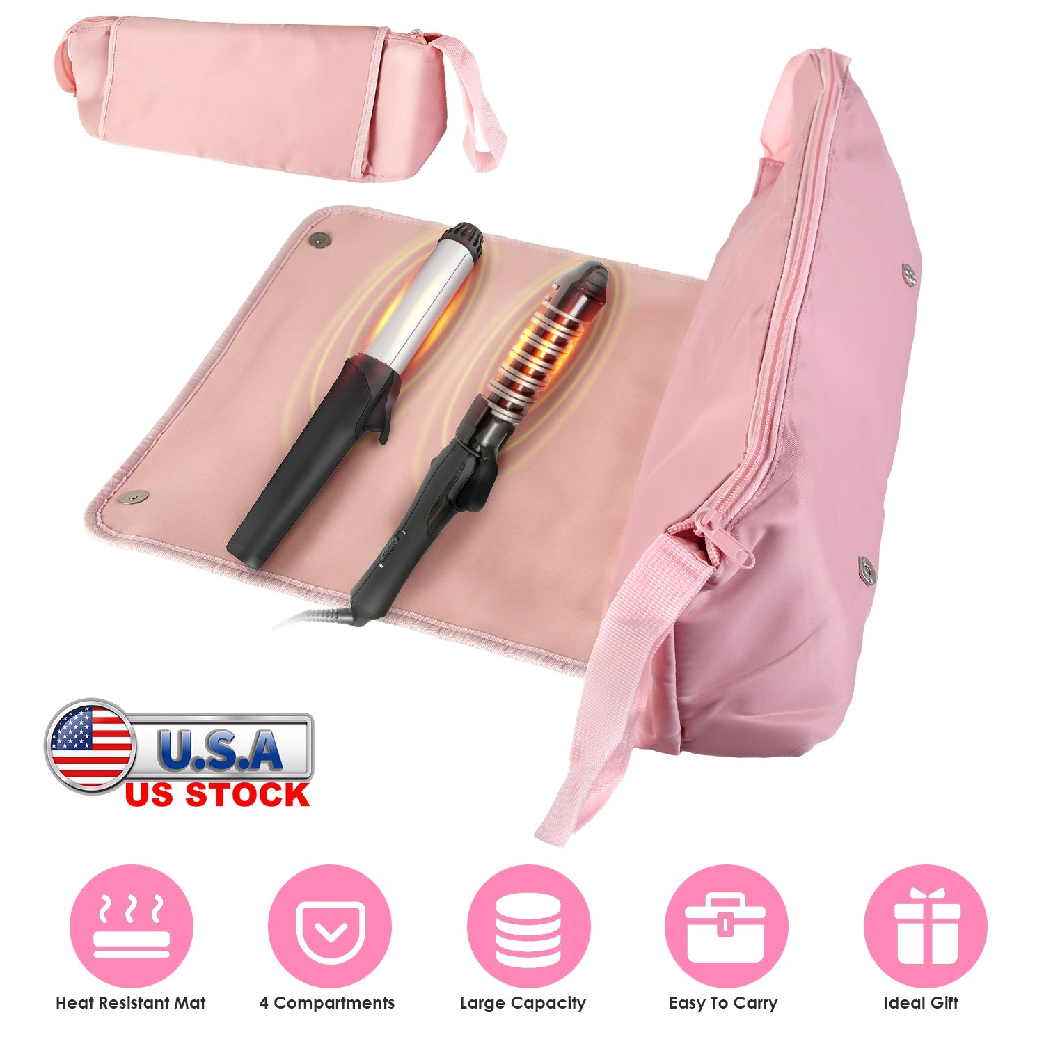 2 In 1 Hair Tools Travel Bag and Heat-resistant Mat Curling Iron Travel Case Hair Tool Pouch Holder Organizer for Curling Iron Straightener Hair Dryer