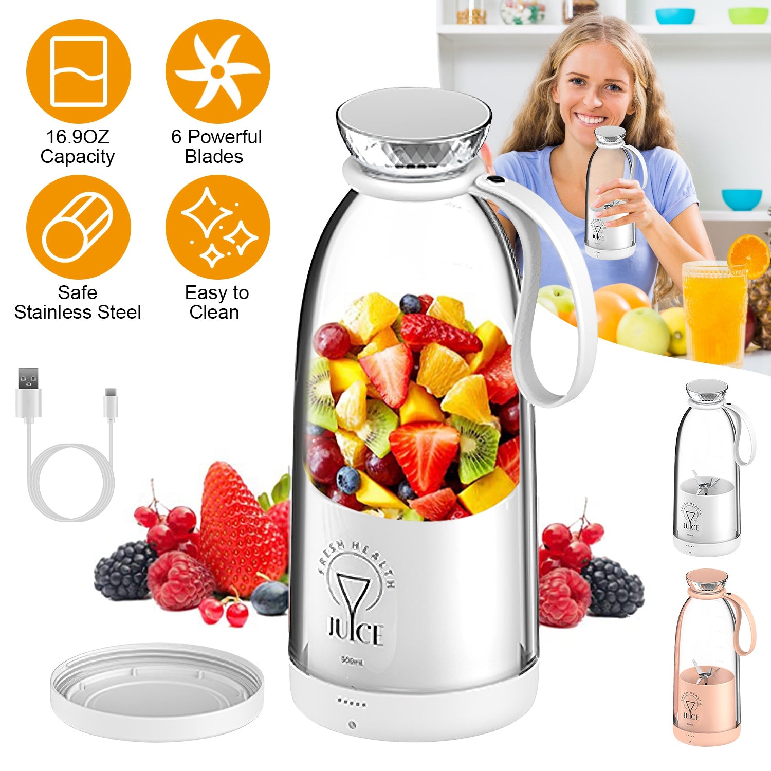 2-in-1 16.9OZ Portable Fruit Blender Electric Rechargeable Juice Cup for Shakes Smoothies Juice Personal Fruit Mixer with 6 Blades
