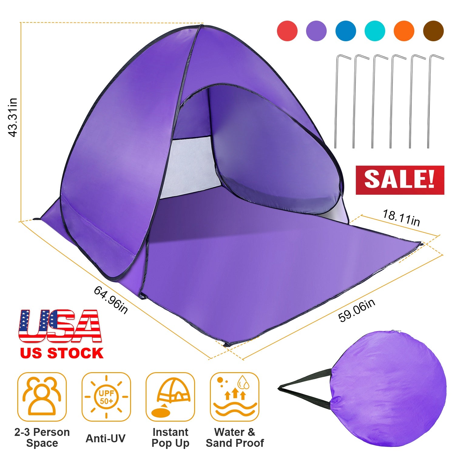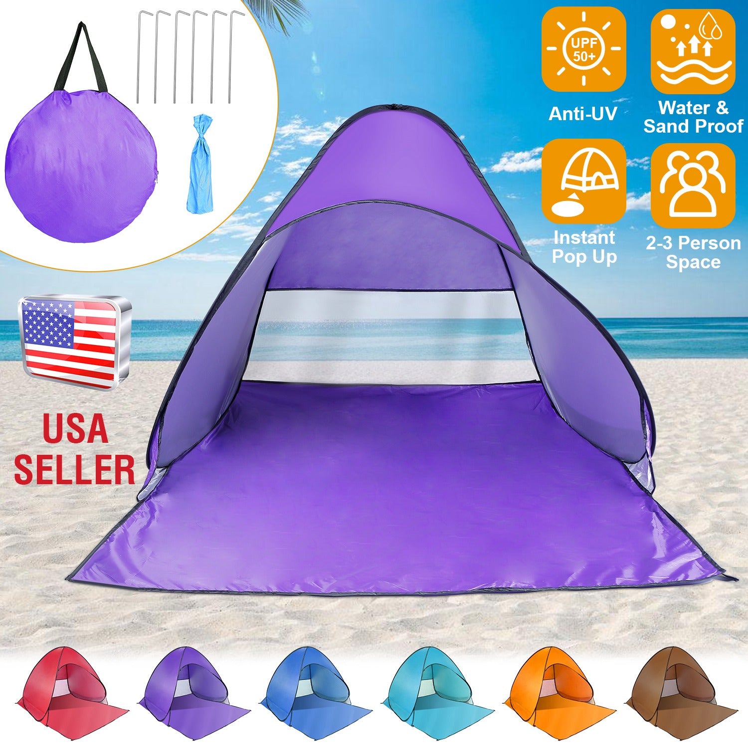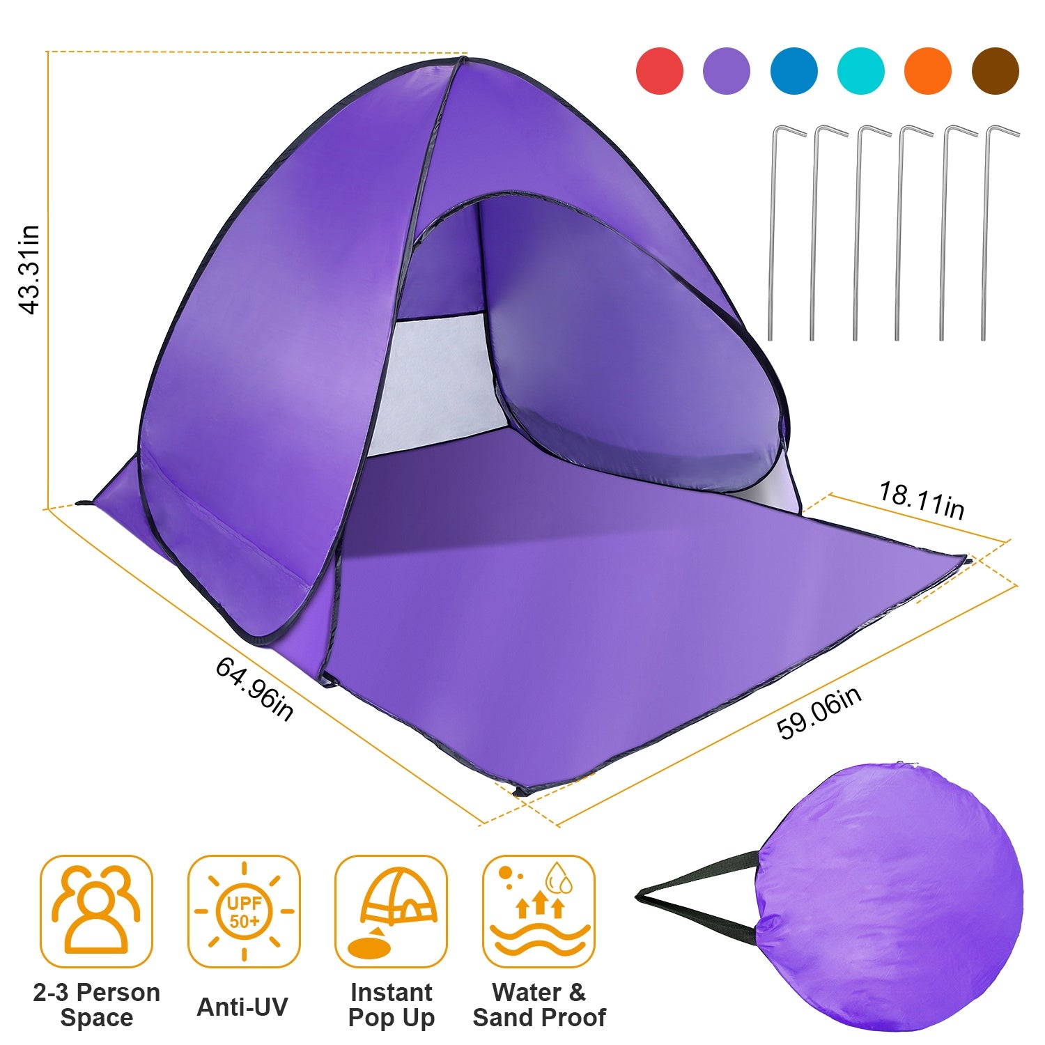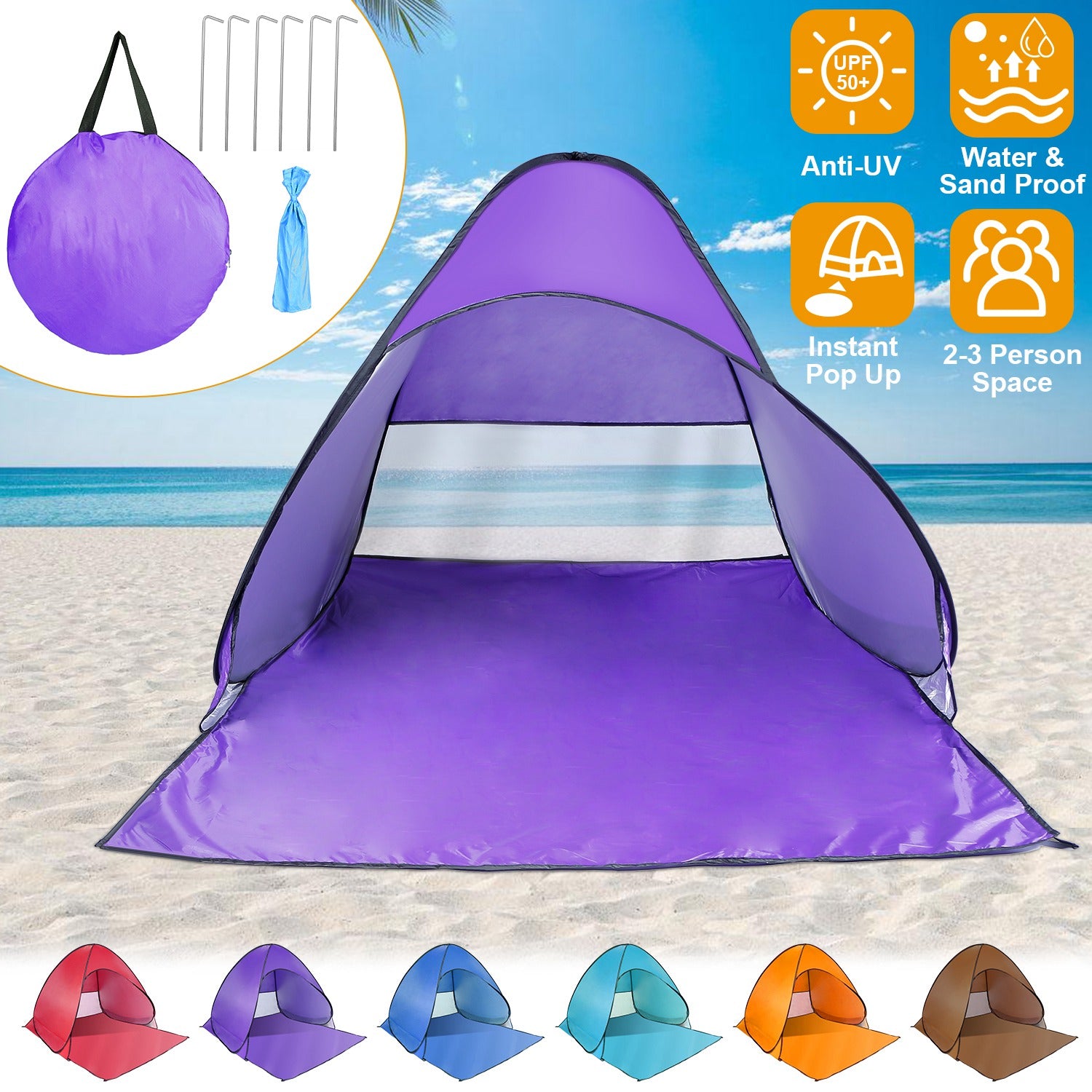 Pop Up Beach Tent Sun Shade Shelter Anti-UV Automatic Waterproof Tent Canopy for 2/3 Man w/ Net Window Storage Bag for Outdoor Beach Camping Fishing P