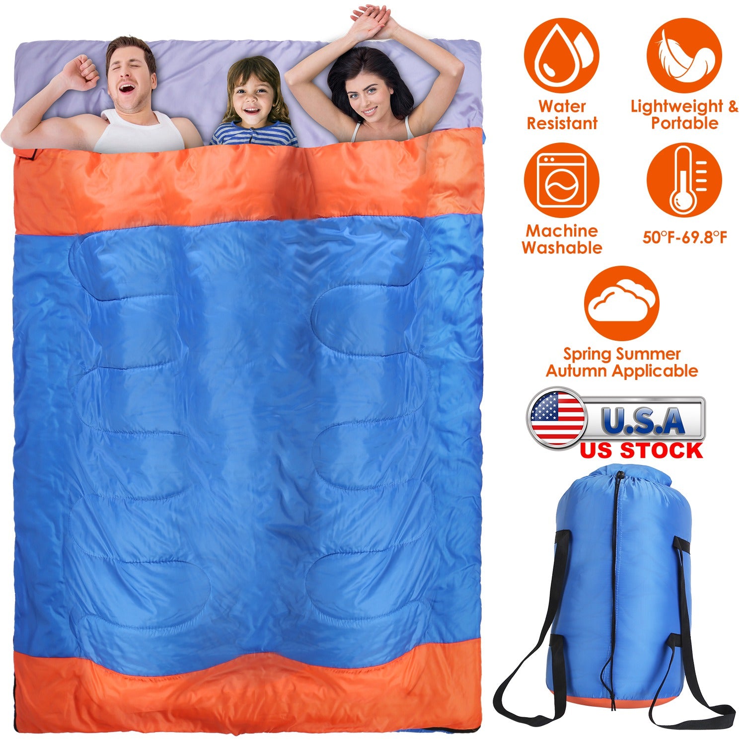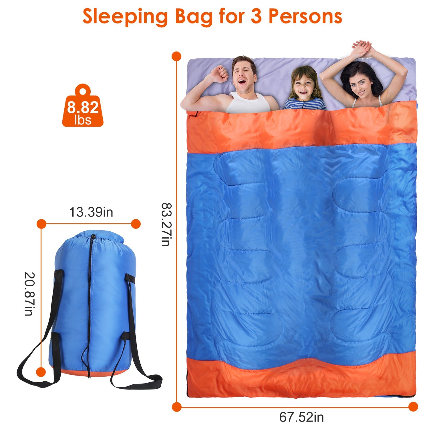 3 People Sleeping Bag for Adult Kids Lightweight Water Resistant Camping Cotton Liner Cold Warm Weather Indoor Outdoor Use 3 Season with Sack for Spri