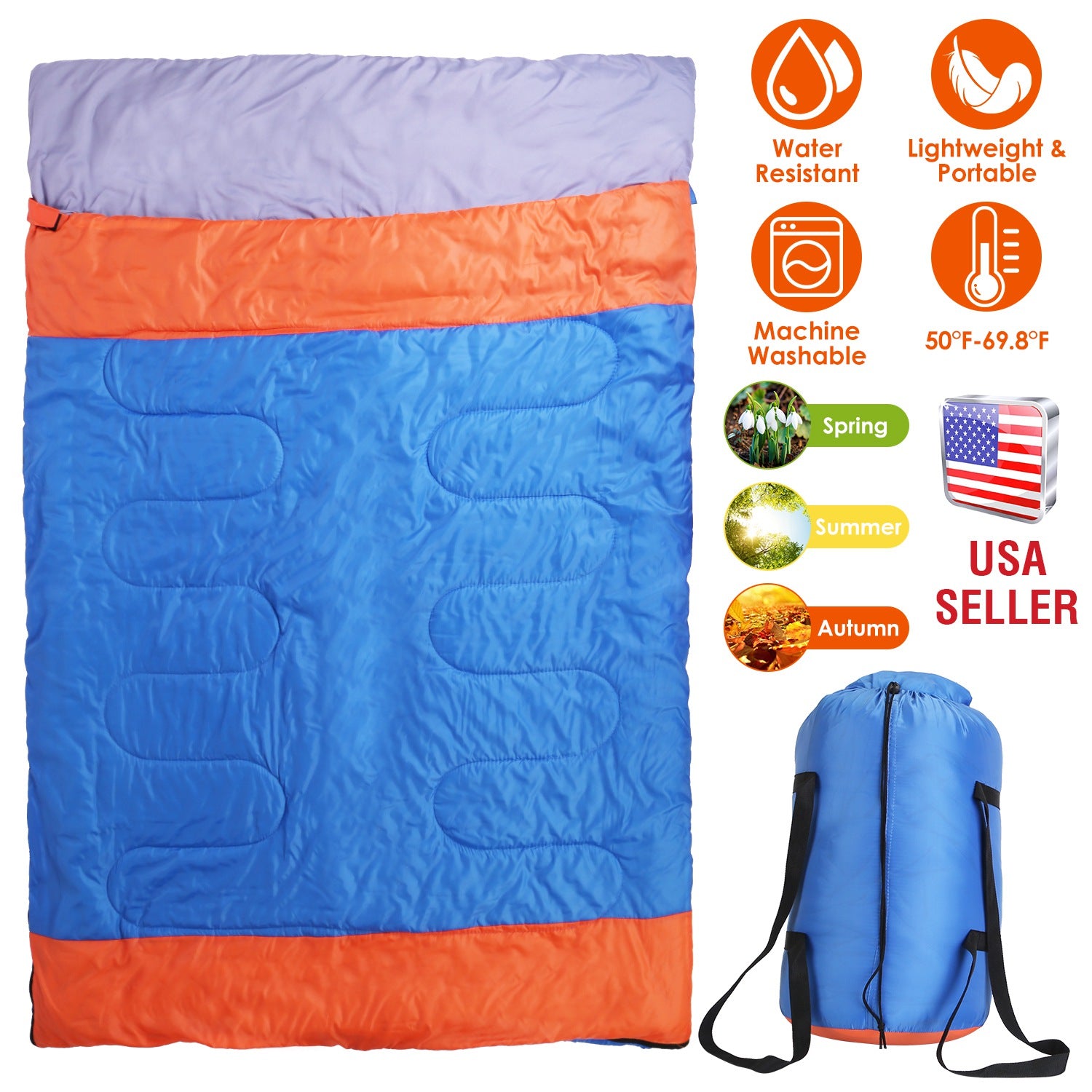 This packable sleeping bag is designed for outdoor sleeping, which is an optimal companion for backpacking, camping, hiking and trekking trips. It is lightweight, water resistant, warm and washable with two kinds of usages. The premium cotton stuffing keeps you warm. The fasten straps keeps you safe and the envelope design keeps you comfortable. Carry it and start a trip without planning! Perfect for spring, summer and autumn provide you sound sleeping even in outdoor activities.