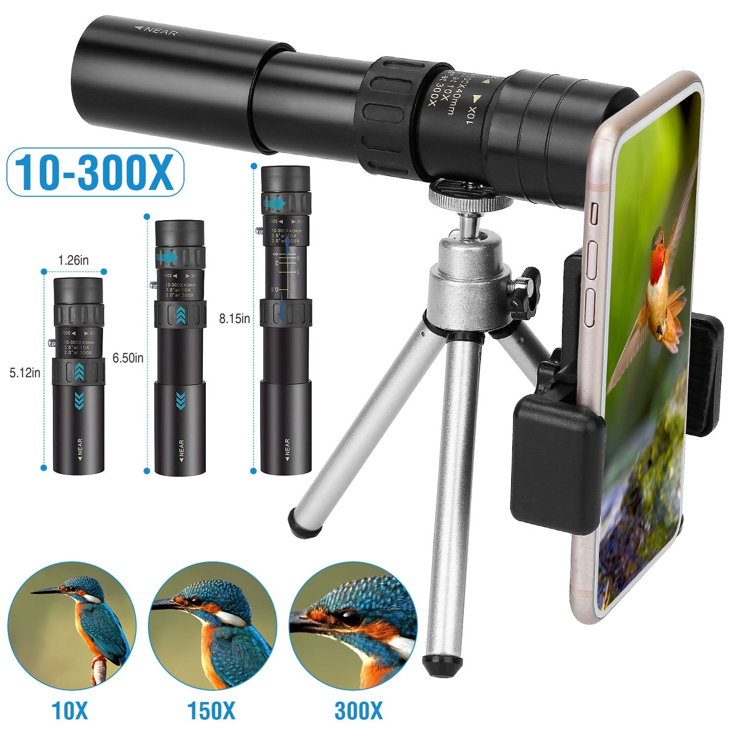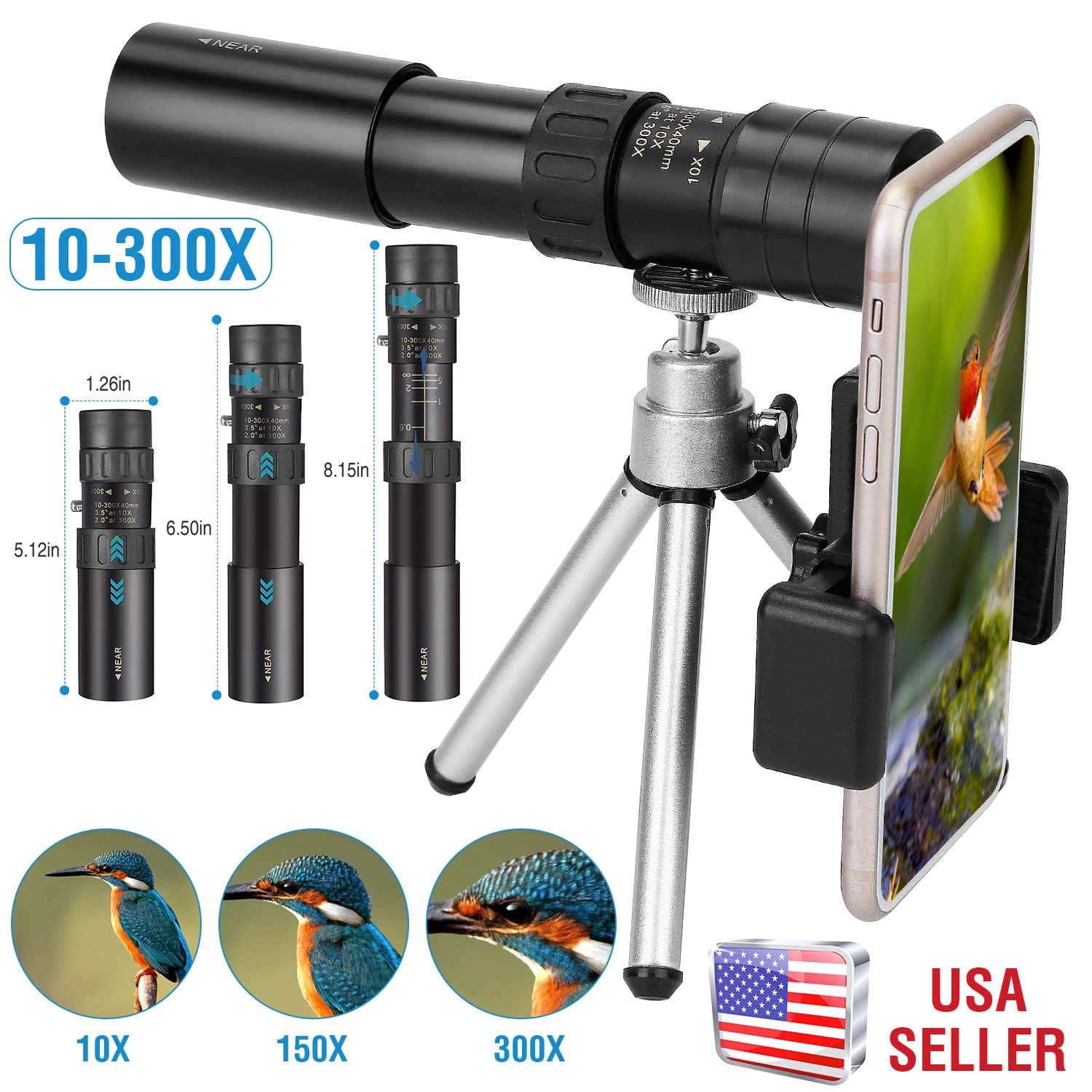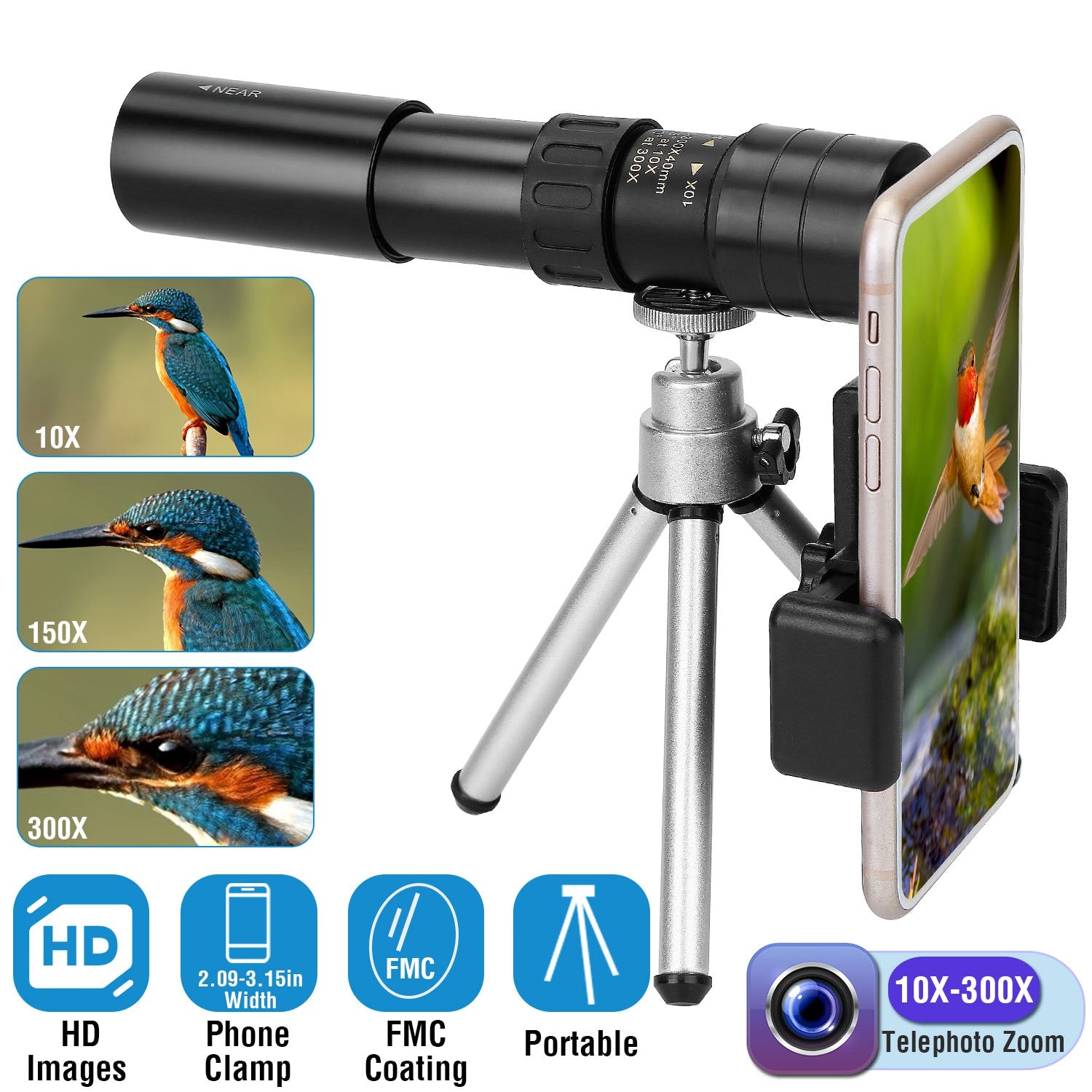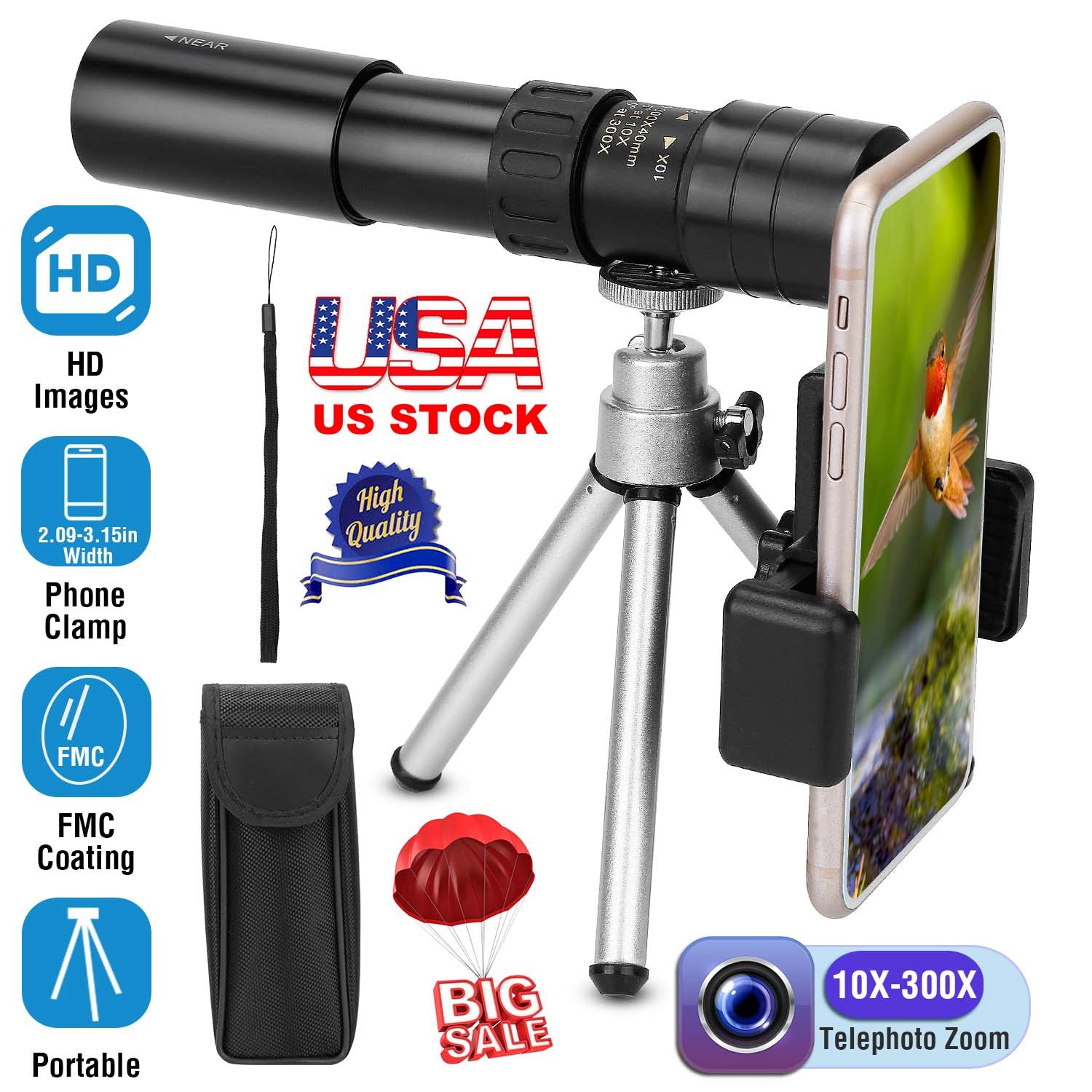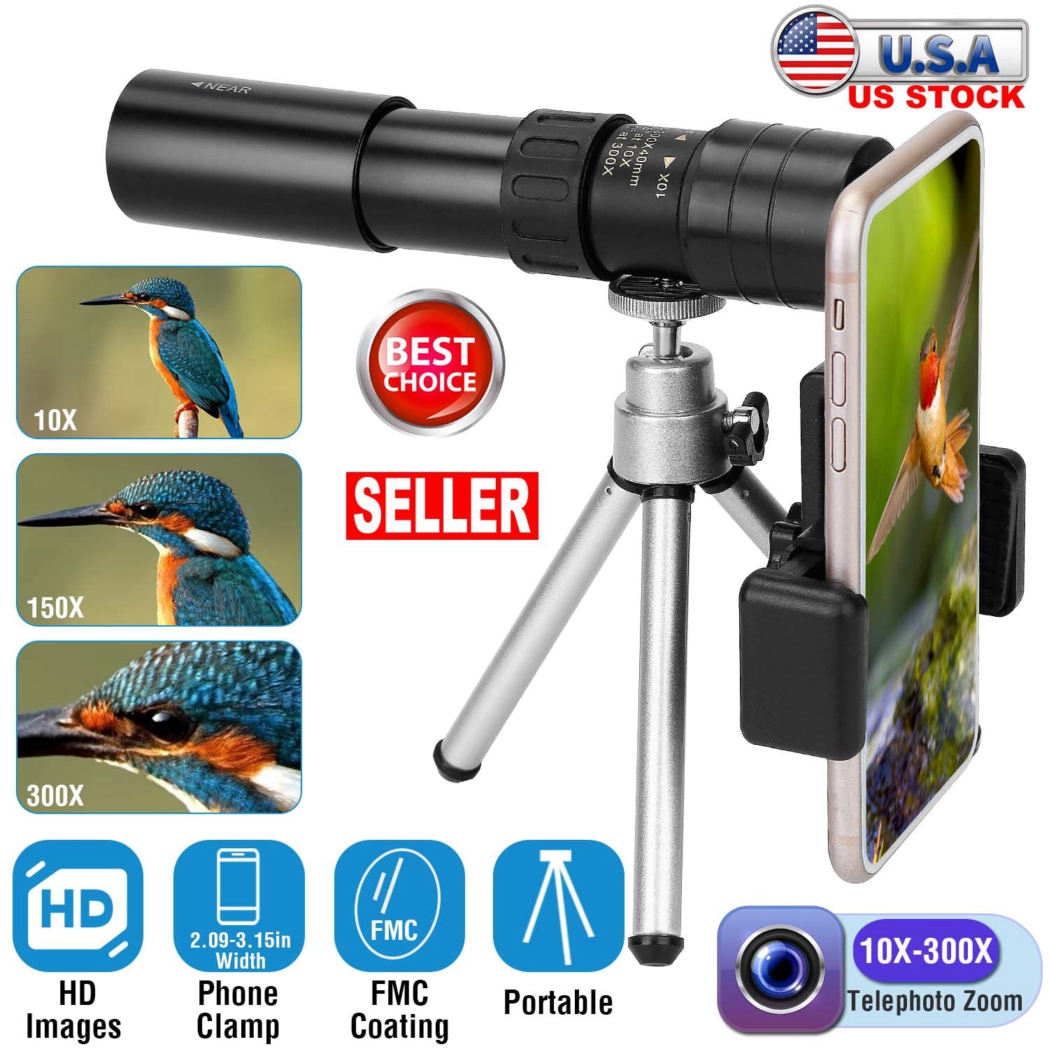 10X-300X Zoom Monocular Telescope High Definition Phone Telephoto Lens w/ Phone Holder Clamp Tripod For Hunting Hiking Sightseeing