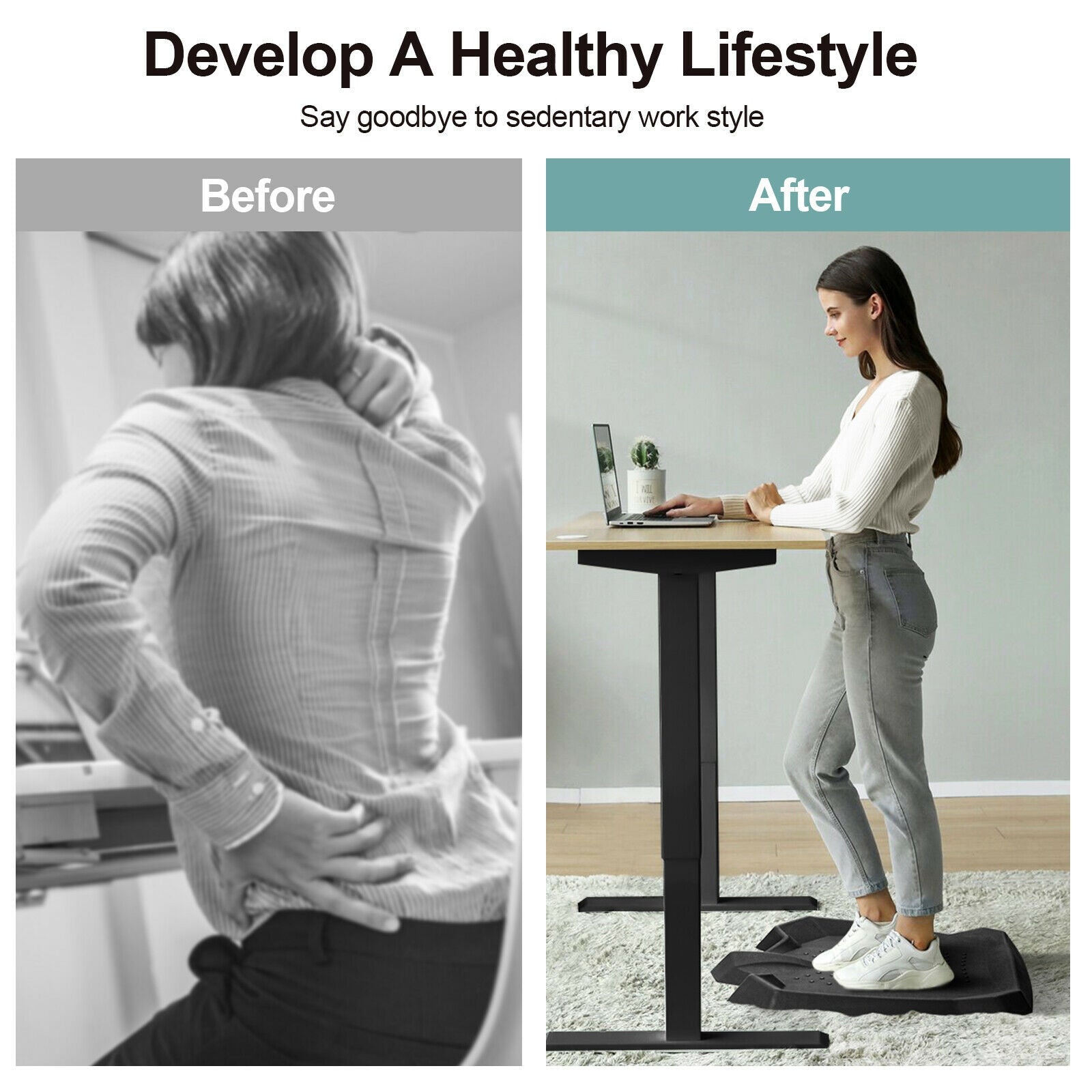 This standing mat is an essential accessory for users of standing desks making long term standing easier and healthier. The surface of this standing mat is not flat and designed with diverse terrain and massage points which enable the standing mat to promote the blood circulation and relieve the fatigue and pressure of muscles while standing. Made of premium PU material this anti-fatigue standing mat provides ergonomic support and long service life. Also the anti-skid groove base effectively prevents the floor mat from sliding while using. Except in the office this ergonomic floor mat is commonly used in many locations including home kitchen garage and more. If you are looking for a standing mat like this do not hesitate to place an order! Provides ergonomic standing support while standing Encourages you to standing work which is healthier than sitting Relieves the fatigue and pressure caused by long-term standing Specially designed with diverse terrain to keep you moving Made of high-density PU material for supporting and comfort Equipped with ergonomic pressure points for massage while standing Suitable for various scenarios such as home office kitchen etc. Anti-skid groove base prevents the floor mat from sliding Able to withstand most shoe types like sneakers Waterproof and stain resistant surface is easy to clean