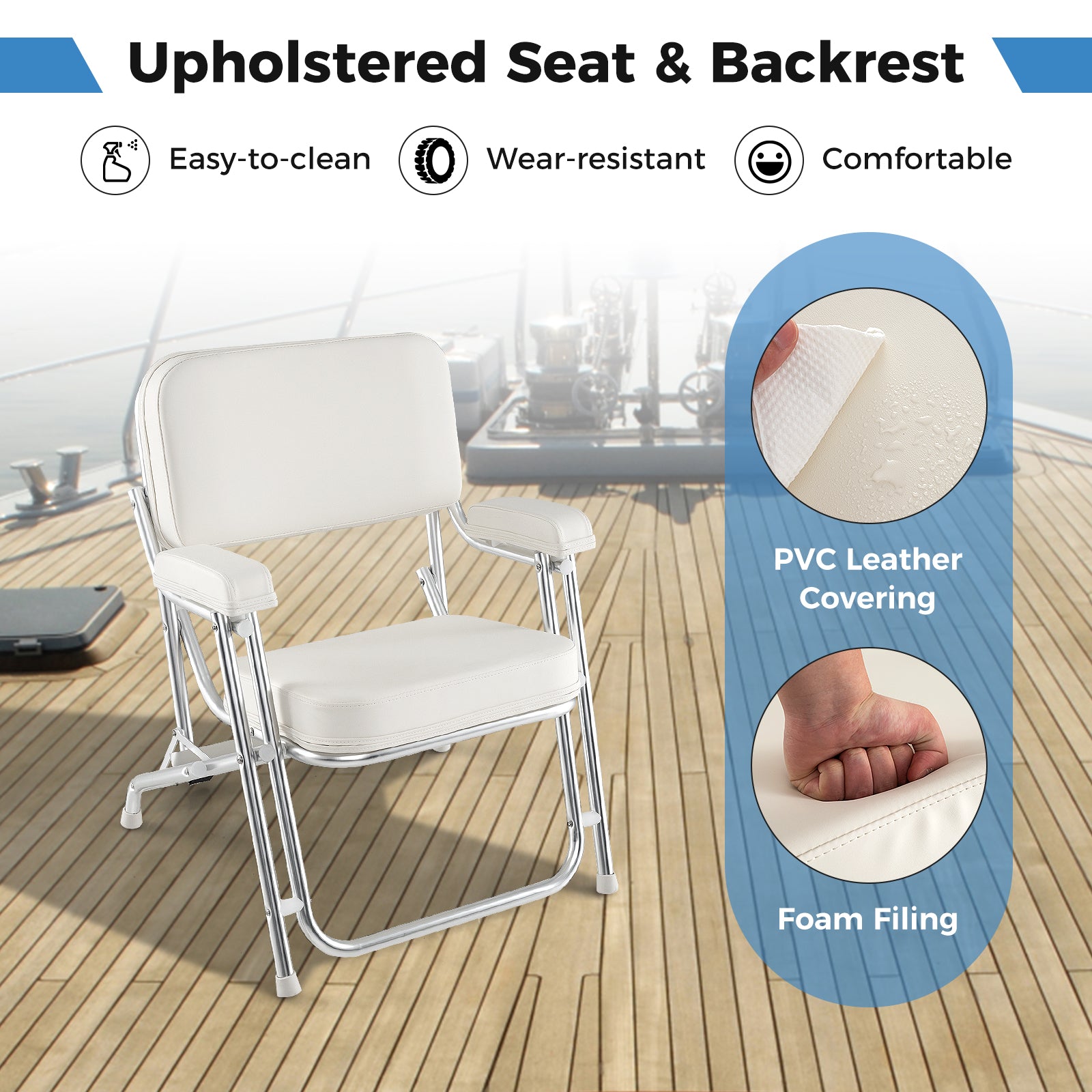 Portable Aluminum Boat Deck Beach Chair with Cushioned Seat-White