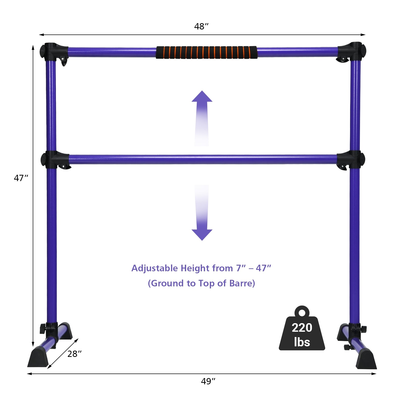 4 Feet Portable Ballet Barre with Adjustable Height-Purple