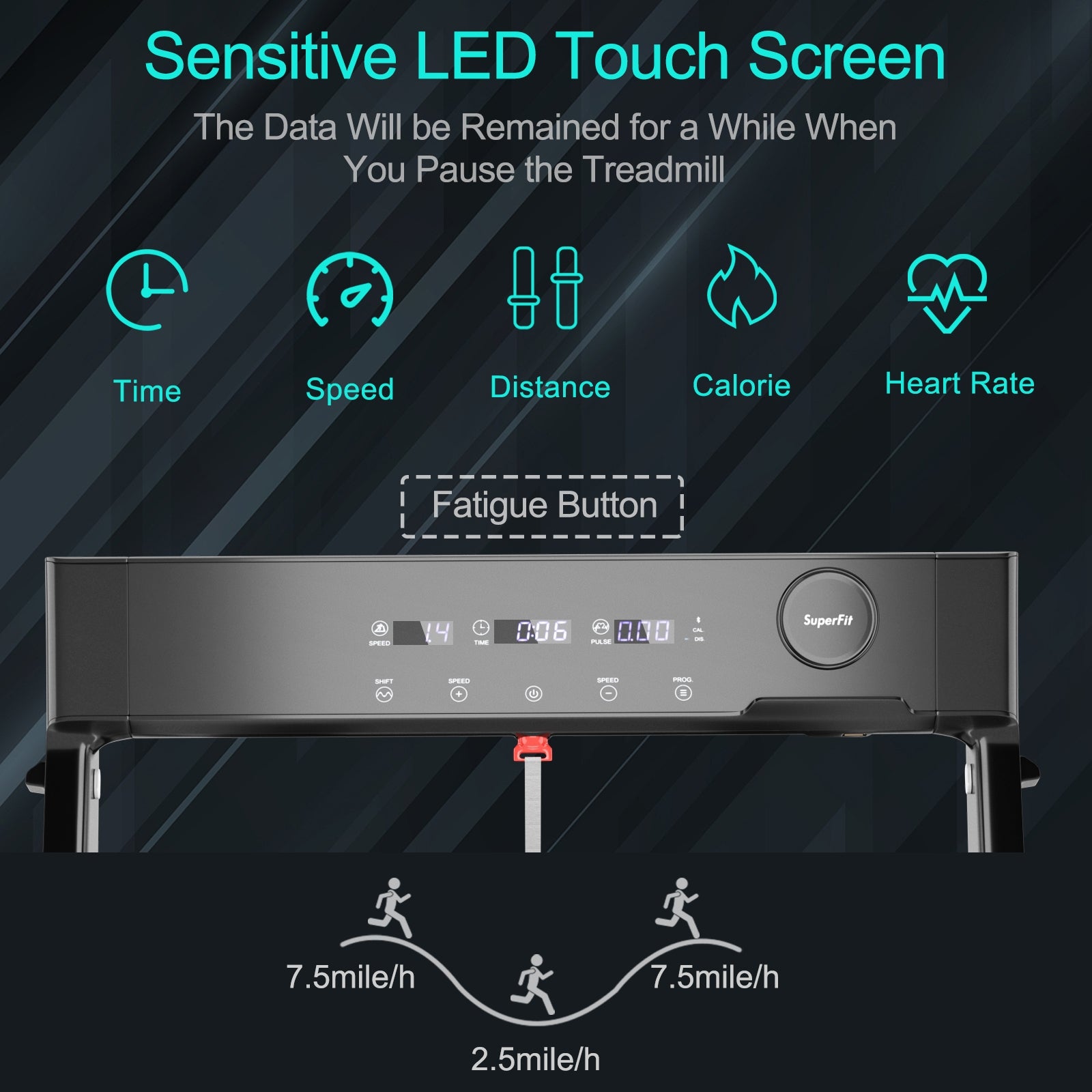 4.0HP Foldable Electric Treadmill Jogging Machine with Speaker LED-Black
