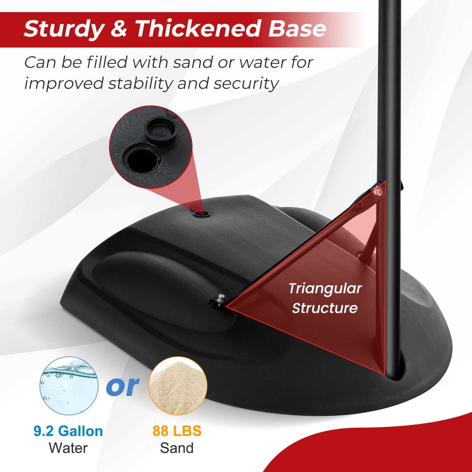 ● 5-level adjustable height for people of different heights● Shatterproof backboard with firm connections for durability● Reinforced Y-shaped structure greatly enhances sturdiness● Fillable base with triangular structures for stable performance● Built-in wheels for easier movement and smooth corners for safe use● Solid metal rim with sleek metal hooks and durable net for long-time use● Premium and anti-rust metal tubes for weather resistance● Ideal for courtyard driveway playground indoor use and so on● Simple to assemble with detailed and illustrated user's manual Installation guide