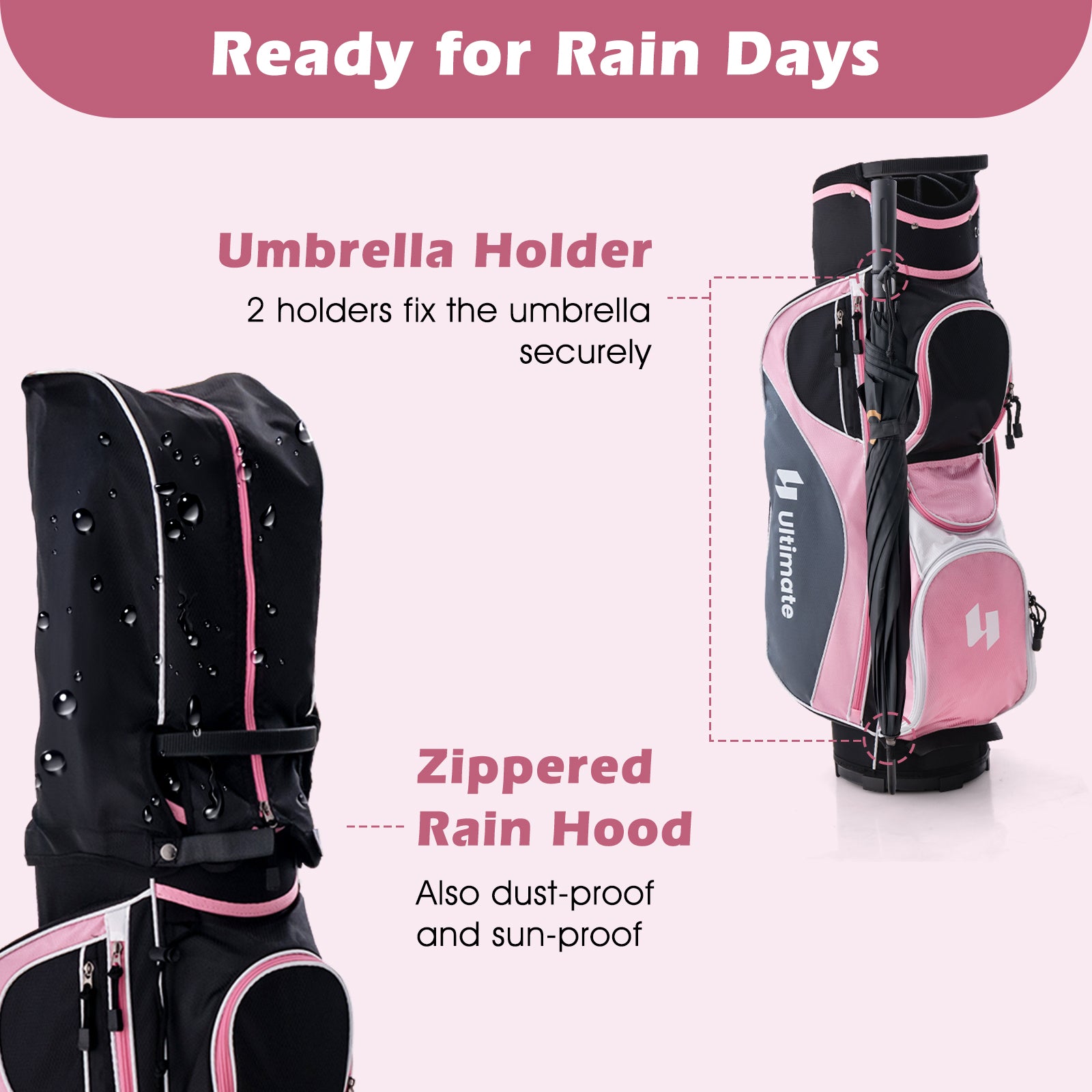 Women's Complete Golf Club Set Right Hand with Rain Hood-Pink