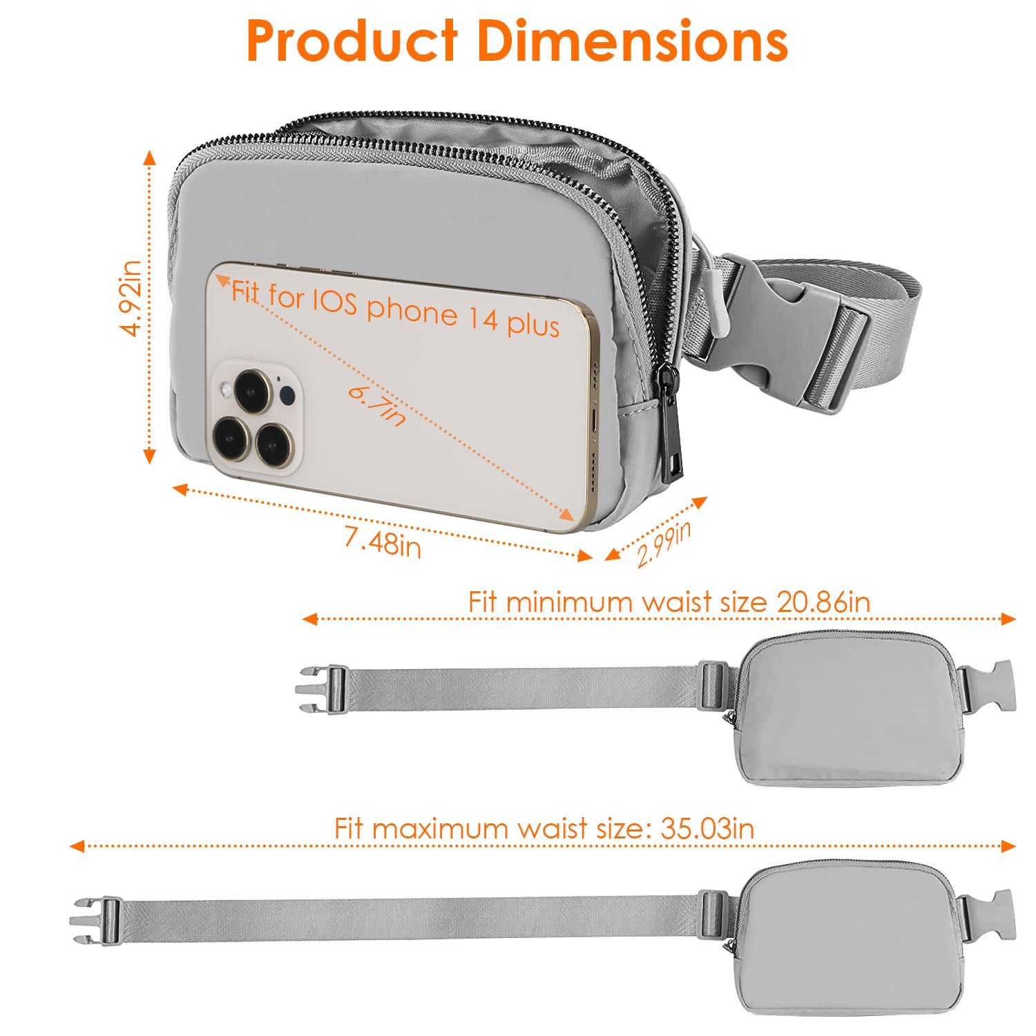 - Adjustable Belt: The adjustable waist belt ranges from 20.86in to 35.03in, providing a customizable fit to ensure comfort for all body types.