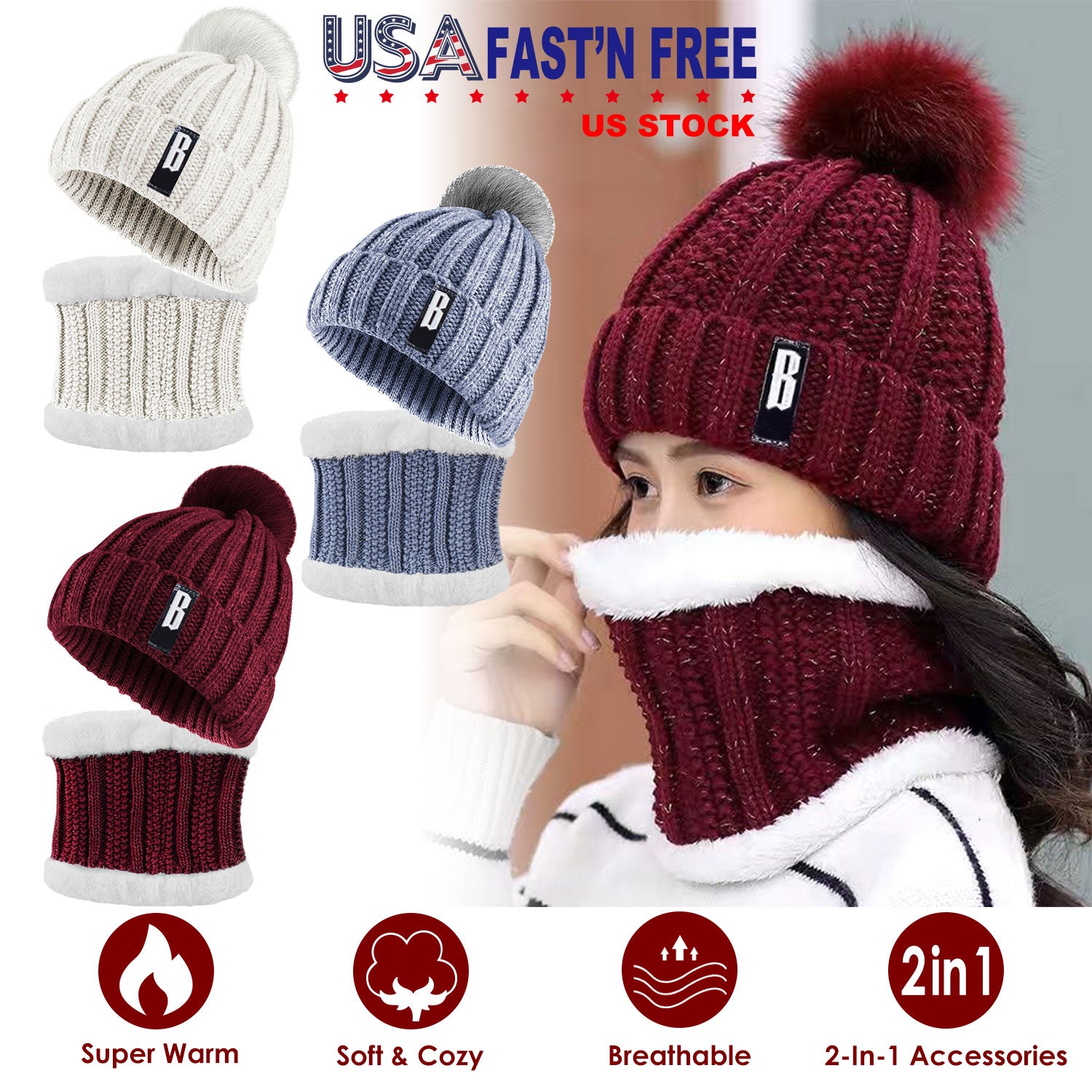 Winter Beanie Hat Scarf Set Women Warm Knitting Skull Cap Neck Warmer for Walking Running Hiking Camping Outdoors Gift